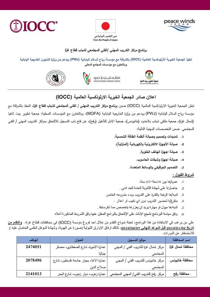 اعلان صادر عن الجمعية الخيرية الأرثوذكسية بخصوص دورات مهنية مجانية calendar_month2018/12/26 12:02 pm visibility 2,168 مقالات ذات صلة share منح دراسية في تونس للدراسات العليا للعام 2025/2026التفاصيل ...share منح في جامعة قبرص للتكنولوجيا للعام الدراسي 2025/2026التفاصيل ...share مقاعد الاختصاص العالي في الطب بالأردن للعام 2025/2026التفاصيل ...share فتح باب التسجيل في منحة تحرير الشهادات الجامعية "العالقة" لخريجي الجامعات المحلية في قطاع غزة (الدبلوم والبكالوريوس)التفاصيل ...share منح دراسية ممولة جزئياً في باكستان للبكالوريوس والماجستير والدكتوراه 2025/2026التفاصيل ...share منح دراسية في تخصص الطب البشري في كوبا 2025/2026التفاصيل ... يمنع استخدام برامج النسخ