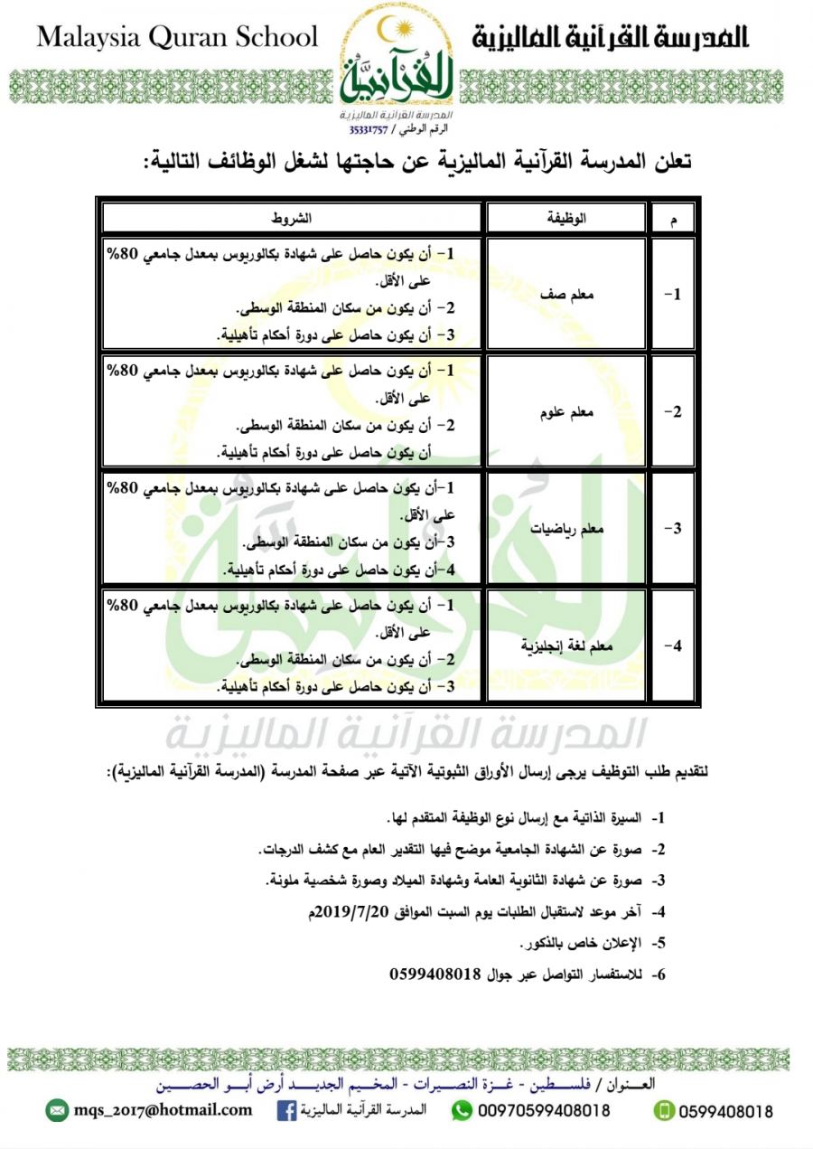 اعلان توظيف معلمين في عدة تخصصات --- المدرسة القرأنية الماليزية - غزة calendar_month2019/07/11 02:04 pm visibility 1,793 مقالات ذات صلة share إعلان تشغيل عمال نظافة وعمال تنظيف مصافي ومناهل مياه الأمطار بالتعاون بين بلدية غزة واللجنة الدولية للصليب الأحمر التفاصيل ...share اعلان توظيف مدخل/ة بيانات لدى أطباء العالم فرنساالتفاصيل ...share اعلان توظيف ممرضين لدى الهيئة الطبية الدوليةالتفاصيل ...share كشف مستفيدي الغاز لتاريخ 24-11-2025 التفاصيل ...share اعلان وظائف تدريسية في وزارة التربية والتعليم والتعليم العالي، بدولة قطرالتفاصيل ...share إعلان توظيف – مساعد إداري لدى مستشفى أصدقاء المريضالتفاصيل ... يمنع استخدام برامج النسخ
