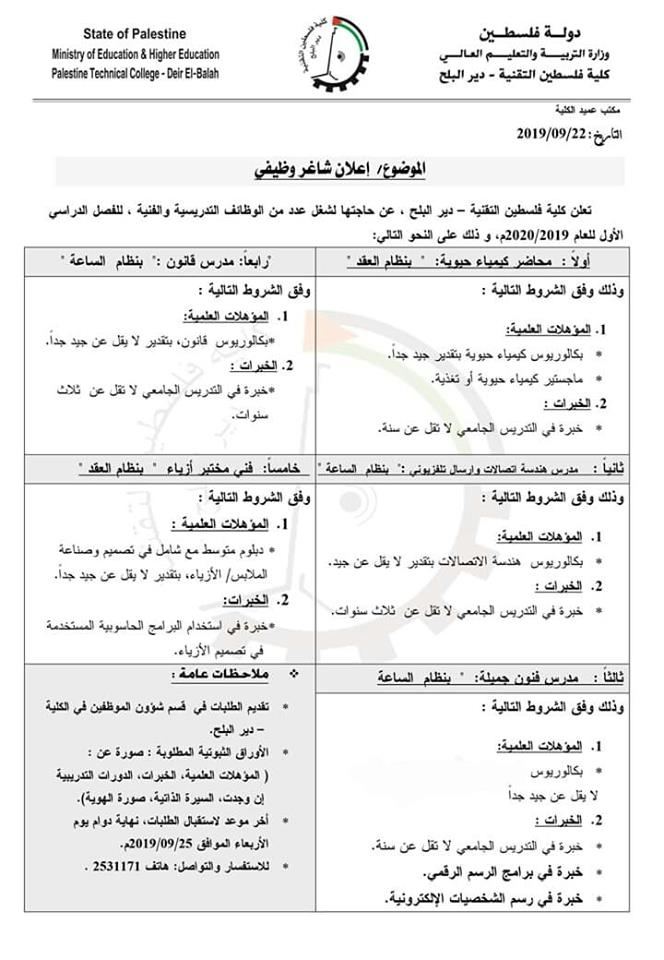 اعلان شغل وظائف تدريسية وفنية -- كلية فلسطين التقنية calendar_month2019/09/23 08:53 am visibility 2,013 مقالات ذات صلة share إعلان تشغيل عمال نظافة وعمال تنظيف مصافي ومناهل مياه الأمطار بالتعاون بين بلدية غزة واللجنة الدولية للصليب الأحمر التفاصيل ...share اعلان توظيف مدخل/ة بيانات لدى أطباء العالم فرنساالتفاصيل ...share اعلان توظيف ممرضين لدى الهيئة الطبية الدوليةالتفاصيل ...share كشف مستفيدي الغاز لتاريخ 24-11-2025 التفاصيل ...share اعلان وظائف تدريسية في وزارة التربية والتعليم والتعليم العالي، بدولة قطرالتفاصيل ...share إعلان توظيف – مساعد إداري لدى مستشفى أصدقاء المريضالتفاصيل ... يمنع استخدام برامج النسخ