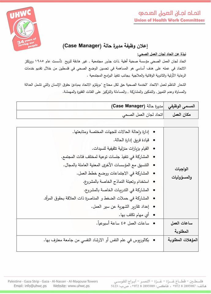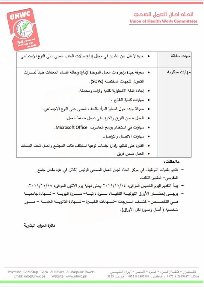 اعلان توظيف " مديرة حالة " --- اتحاد لجان العمل الصحي calendar_month2019/11/14 12:13 pm visibility 811 مقالات ذات صلة share إعلان تشغيل عمال نظافة وعمال تنظيف مصافي ومناهل مياه الأمطار بالتعاون بين بلدية غزة واللجنة الدولية للصليب الأحمر التفاصيل ...share اعلان توظيف مدخل/ة بيانات لدى أطباء العالم فرنساالتفاصيل ...share اعلان توظيف ممرضين لدى الهيئة الطبية الدوليةالتفاصيل ...share كشف مستفيدي الغاز لتاريخ 24-11-2025 التفاصيل ...share اعلان وظائف تدريسية في وزارة التربية والتعليم والتعليم العالي، بدولة قطرالتفاصيل ...share إعلان توظيف – مساعد إداري لدى مستشفى أصدقاء المريضالتفاصيل ... يمنع استخدام برامج النسخ