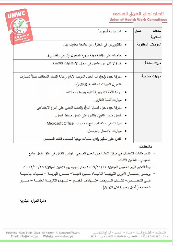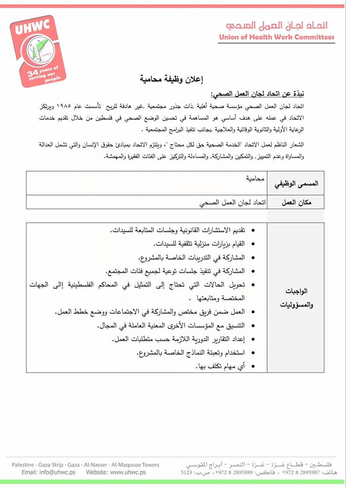 اعلان توظيف " محامية " --- اتحاد لجان العمل الصحي calendar_month2019/11/14 12:17 pm visibility 981 مقالات ذات صلة share إعلان تشغيل عمال نظافة وعمال تنظيف مصافي ومناهل مياه الأمطار بالتعاون بين بلدية غزة واللجنة الدولية للصليب الأحمر التفاصيل ...share اعلان توظيف مدخل/ة بيانات لدى أطباء العالم فرنساالتفاصيل ...share اعلان توظيف ممرضين لدى الهيئة الطبية الدوليةالتفاصيل ...share كشف مستفيدي الغاز لتاريخ 24-11-2025 التفاصيل ...share اعلان وظائف تدريسية في وزارة التربية والتعليم والتعليم العالي، بدولة قطرالتفاصيل ...share إعلان توظيف – مساعد إداري لدى مستشفى أصدقاء المريضالتفاصيل ... يمنع استخدام برامج النسخ