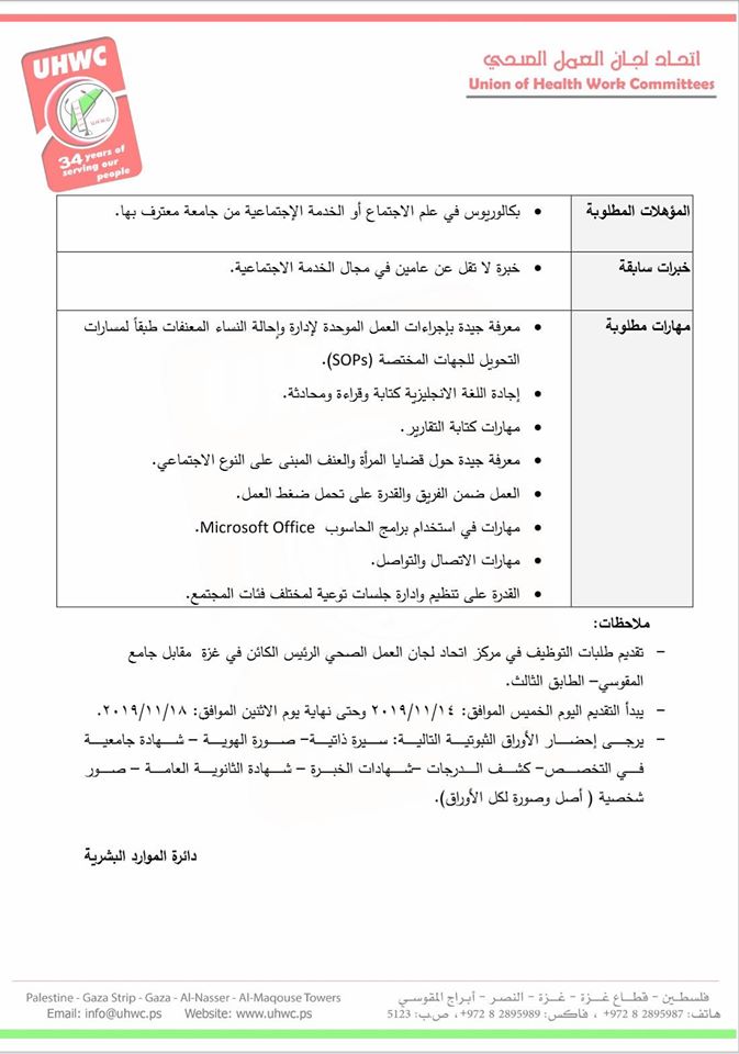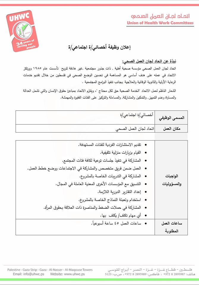 اعلان توظيف " أخصائي/ة اجتماعي/ة " --- اتحاد لجان العمل الصحي calendar_month2019/11/14 12:55 pm visibility 1,055 مقالات ذات صلة share إعلان تشغيل عمال نظافة وعمال تنظيف مصافي ومناهل مياه الأمطار بالتعاون بين بلدية غزة واللجنة الدولية للصليب الأحمر التفاصيل ...share اعلان توظيف مدخل/ة بيانات لدى أطباء العالم فرنساالتفاصيل ...share اعلان توظيف ممرضين لدى الهيئة الطبية الدوليةالتفاصيل ...share كشف مستفيدي الغاز لتاريخ 24-11-2025 التفاصيل ...share اعلان وظائف تدريسية في وزارة التربية والتعليم والتعليم العالي، بدولة قطرالتفاصيل ...share إعلان توظيف – مساعد إداري لدى مستشفى أصدقاء المريضالتفاصيل ... يمنع استخدام برامج النسخ
