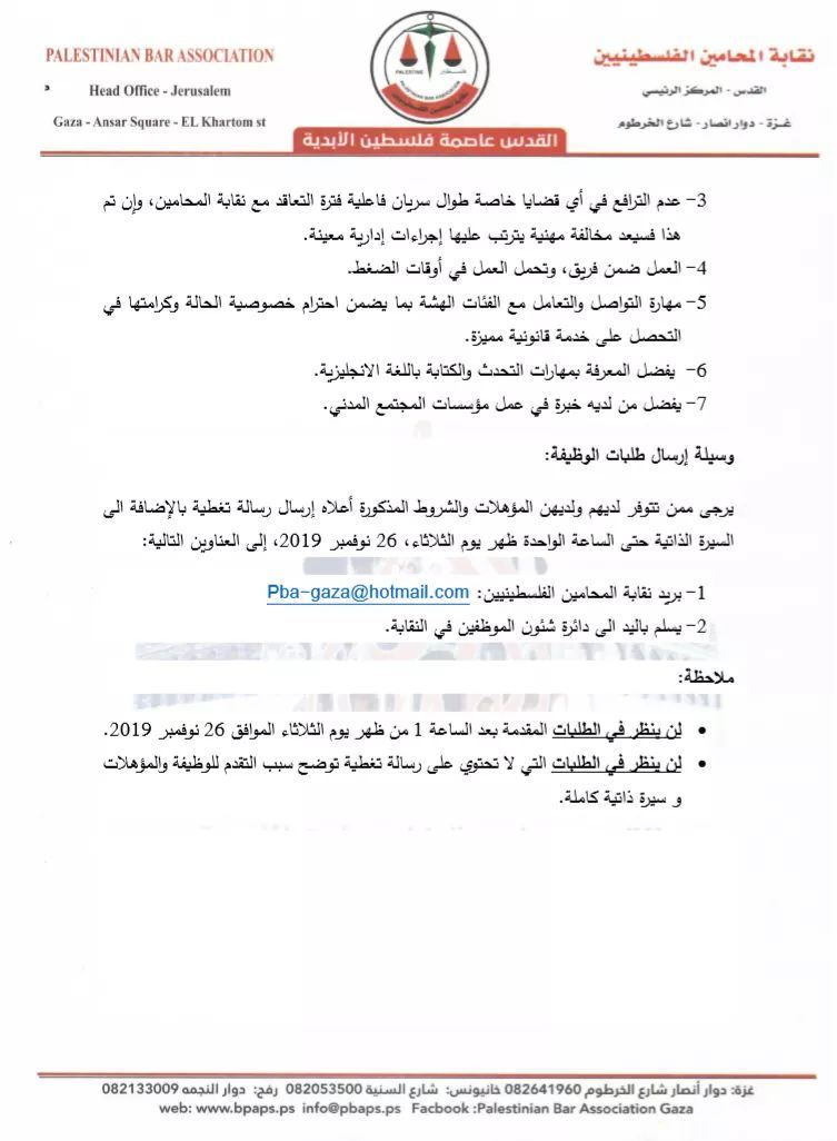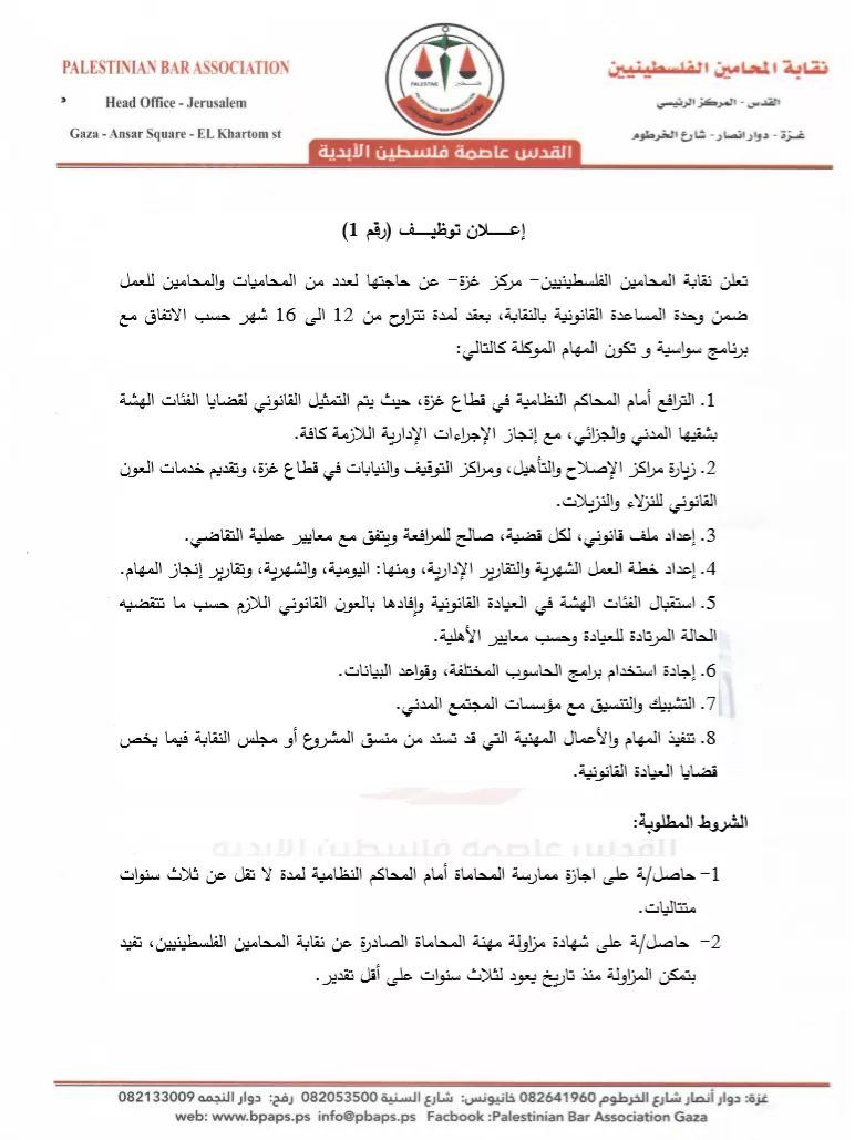 فرص عمل " محامين - محاميات " -- نقابة المحامين calendar_month2019/11/20 05:44 pm visibility 1,285 مقالات ذات صلة share إعلان تشغيل عمال نظافة وعمال تنظيف مصافي ومناهل مياه الأمطار بالتعاون بين بلدية غزة واللجنة الدولية للصليب الأحمر التفاصيل ...share اعلان توظيف مدخل/ة بيانات لدى أطباء العالم فرنساالتفاصيل ...share اعلان توظيف ممرضين لدى الهيئة الطبية الدوليةالتفاصيل ...share كشف مستفيدي الغاز لتاريخ 24-11-2025 التفاصيل ...share اعلان وظائف تدريسية في وزارة التربية والتعليم والتعليم العالي، بدولة قطرالتفاصيل ...share إعلان توظيف – مساعد إداري لدى مستشفى أصدقاء المريضالتفاصيل ... يمنع استخدام برامج النسخ