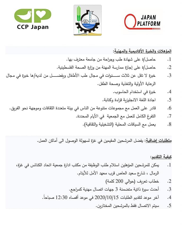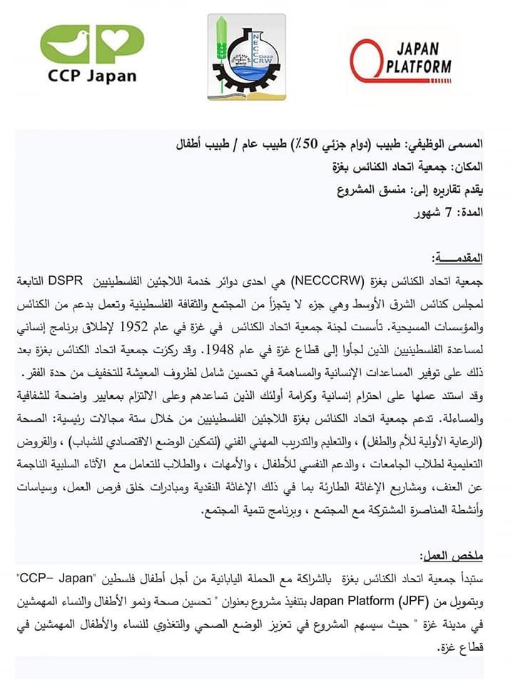وظيفة طبيب عام / طبيب أطفال بدوام جزئي -- مجلس كنائس الشرق الأوسط تحميل طلب التوظيف calendar_month2020/10/10 02:14 pm visibility 931