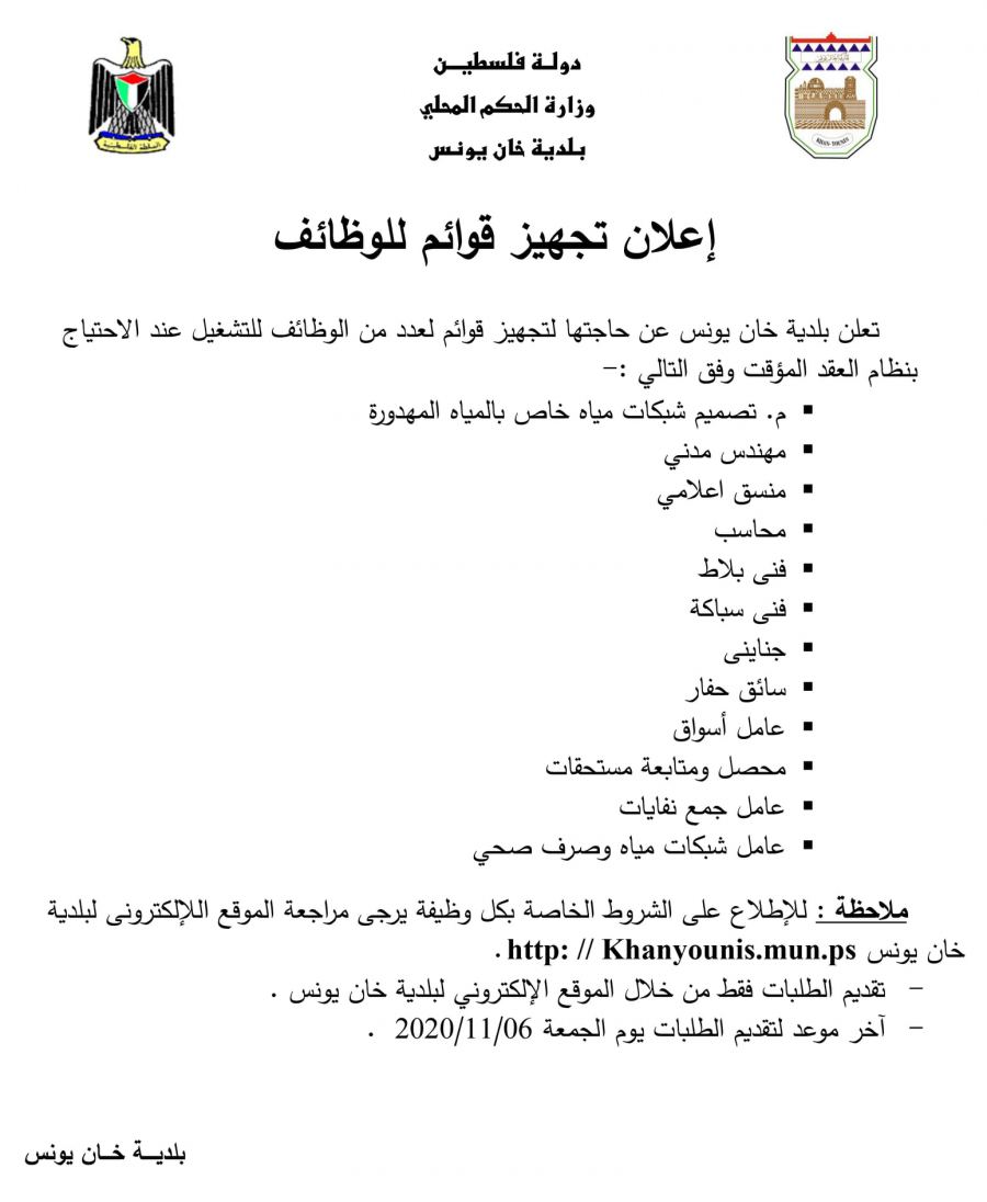 بلدية خان يونس تعلن عن حاجتها لتجهيز قوائم لعدد من الوظائف للتشغيل عند الاحتياج نموذج التسجيل calendar_month2020/10/24 04:20 pm visibility 1,117 مقالات ذات صلة share إعلان تشغيل عمال نظافة وعمال تنظيف مصافي ومناهل مياه الأمطار بالتعاون بين بلدية غزة واللجنة الدولية للصليب الأحمر التفاصيل ...share اعلان توظيف مدخل/ة بيانات لدى أطباء العالم فرنساالتفاصيل ...share اعلان توظيف ممرضين لدى الهيئة الطبية الدوليةالتفاصيل ...share كشف مستفيدي الغاز لتاريخ 24-11-2025 التفاصيل ...share اعلان وظائف تدريسية في وزارة التربية والتعليم والتعليم العالي، بدولة قطرالتفاصيل ...share إعلان توظيف – مساعد إداري لدى مستشفى أصدقاء المريضالتفاصيل ... يمنع استخدام برامج النسخ
