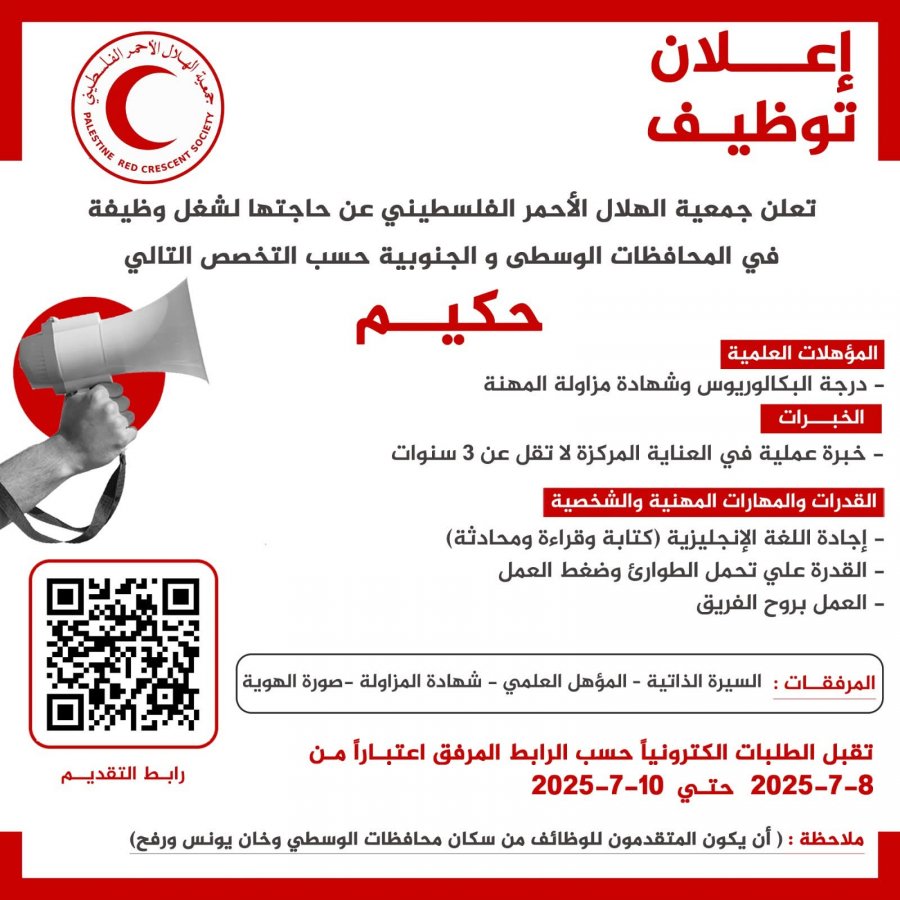 اعلان توظيف حكيم للعمل لدى جمعية الهلال الأحمر الفلسطيني نموذج التسجيل calendar_month2025/07/08 12:25 pm visibility 371 مقالات ذات صلة share مجموعة من فرص العمل لدى المركز السعودي للثقافة والتراث - غزةالتفاصيل ...share بدء التسجيل لقبول طلبات العمالة المؤقتة في العمالة الماهرة والغير ماهرة لدى المجلس النرويجي للاجئين - قطاع غزةالتفاصيل ...share مجموعة من الوظائف الشاغرة الإدارية والطبية لدى جمعية الخدمة العامة ومجموعة مستشفياتهاالتفاصيل ...share إعلان توظيف – موظفة استقبال ( عدد 3 ) لدى جمعية أصدقاء الصحة النفسيةالتفاصيل ...share فرصة عمل سكرتيرة لدى أكاديمية مدى التعليميةالتفاصيل ...share مجموعة فرص عمل لدى مطعم O2 فرع مدينة غزةالتفاصيل ... يمنع استخدام برامج النسخ