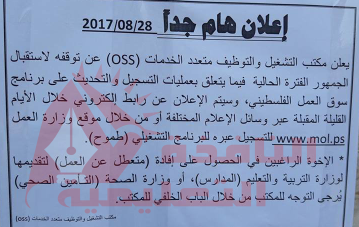 اعلان هام صادر عن مكتب العمل بخصوص تحديث البيانات calendar_month2017/08/28 10:05 am visibility 8,930 مقالات ذات صلة share أسماء المرشحين لبطالة مشروع اليونيسيف في مراكز الإيواء بغزةالتفاصيل ...share التعليم بالضفة يعلن بدء استقبال طلبات التوظيف للوظائف التعليمية للعام 2026/2025التفاصيل ...share الأونروا توضح الآلية المتبعة للتسجيل للوظائف المؤقتة "البطالات" الأونروا توضح الآلية المتبعة للتسجيل للوظائف المؤقتة "البطالات" share بالاسماء كشف 140 معلم ومعلمة للعمل بالمدارس الحكوميةبالاسماء كشف 140 معلم ومعلمة للعمل بالمدارس الحكوميةshare الأونروا بغزة تعلن عن أسماء المقبولين للتخصصات المهنية والتقنية في كلية تدريب غزة وخانيونسالأونروا بغزة تعلن عن أسماء المقبولين للتخصصات المهنية والتقنية في كلية تدريب غزة وخانيونسshare رابط فحص مواعيد وأوقات مقابلات وظائف التعليم يوليو- أغسطس 2023شبكة وظفني ،،، يمنع استخدام برامج النسخ