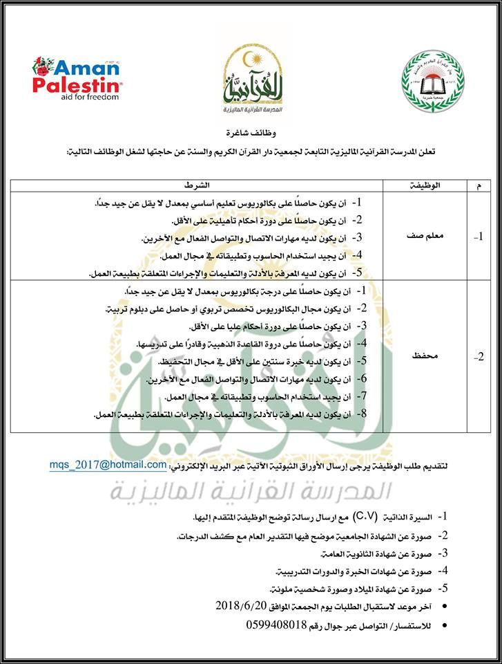 اعلان توظيف " معلم صف - محفظ " // المدرسة القرأنية الماليزية - قطاع غزة calendar_month2018/06/05 04:47 pm visibility 1,626 مقالات ذات صلة share إعلان تشغيل عمال نظافة وعمال تنظيف مصافي ومناهل مياه الأمطار بالتعاون بين بلدية غزة واللجنة الدولية للصليب الأحمر التفاصيل ...share اعلان توظيف مدخل/ة بيانات لدى أطباء العالم فرنساالتفاصيل ...share اعلان توظيف ممرضين لدى الهيئة الطبية الدوليةالتفاصيل ...share كشف مستفيدي الغاز لتاريخ 24-11-2025 التفاصيل ...share اعلان وظائف تدريسية في وزارة التربية والتعليم والتعليم العالي، بدولة قطرالتفاصيل ...share إعلان توظيف – مساعد إداري لدى مستشفى أصدقاء المريضالتفاصيل ... يمنع استخدام برامج النسخ