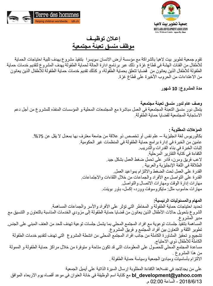 اعلان توظيف " منسق تعبئة مجتمعية " @ جمعية تطوير بيت لاهيا calendar_month2018/06/09 08:47 pm visibility 1,122 مقالات ذات صلة share إعلان تشغيل عمال نظافة وعمال تنظيف مصافي ومناهل مياه الأمطار بالتعاون بين بلدية غزة واللجنة الدولية للصليب الأحمر التفاصيل ...share اعلان توظيف مدخل/ة بيانات لدى أطباء العالم فرنساالتفاصيل ...share اعلان توظيف ممرضين لدى الهيئة الطبية الدوليةالتفاصيل ...share كشف مستفيدي الغاز لتاريخ 24-11-2025 التفاصيل ...share اعلان وظائف تدريسية في وزارة التربية والتعليم والتعليم العالي، بدولة قطرالتفاصيل ...share إعلان توظيف – مساعد إداري لدى مستشفى أصدقاء المريضالتفاصيل ... يمنع استخدام برامج النسخ